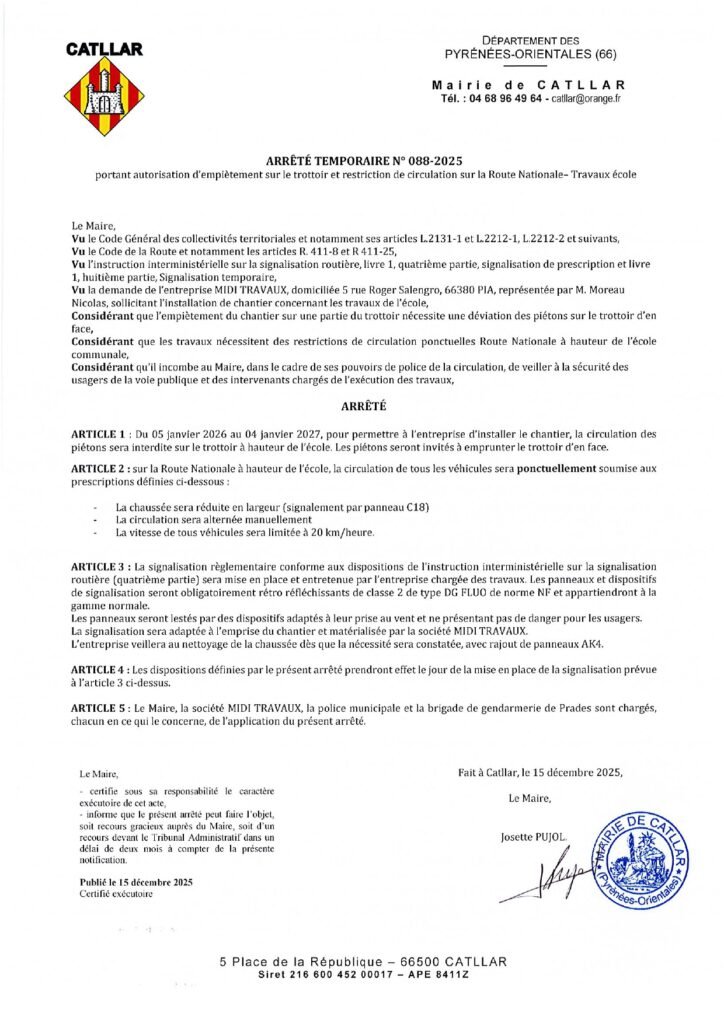 🚧 l’installation d’un chantier concernant les travaux de l’école empiètera sur le trottoir 🚧